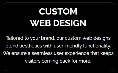 Tailored to your brand, our custom web designs blend aesthetics with user-friendly functionality. We ensure a seamless user experience that keeps visitors coming back for more.