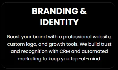 Boost your brand with a professional website, custom logo, and growth tools. We build trust and recognition with CRM and automated marketing to keep you top-of-mind.